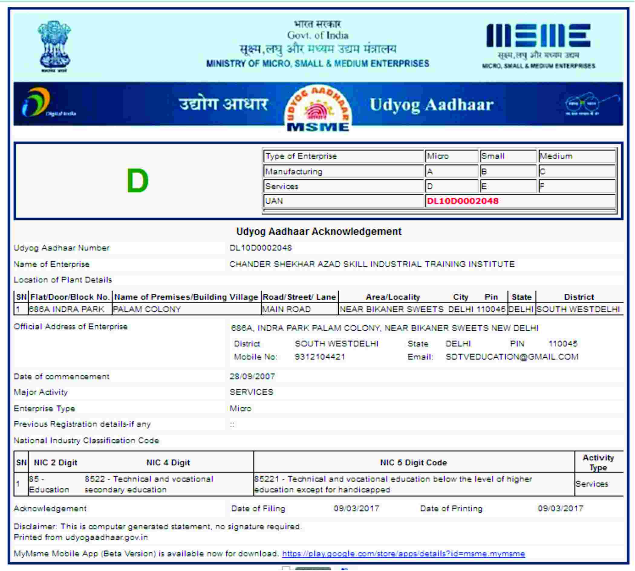 686A, Indra Park, Palam Colony, New delhi-110045
